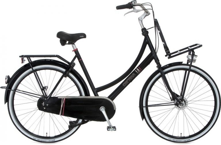 Cortina Roots Transport damesfiets in framemaat 50cm. Kleur: Saphire Black. Uitgerust met achter een Shimano Nexus 7-traps versnellingsnaaf met rollerbrake en voor een Shimano naaf met rollerbrake. Opvallende details: stuurslot, voordrager.